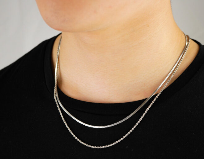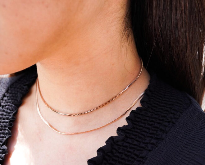 この二つのネックレスはシンプルかつ高級感のあるネックレスになります。