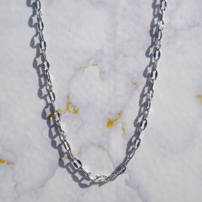 ネックレス 316L chain necklace 通常価格 2500 円 (税込) 購入はこちら ※送料は商品価格に含まれています。 説明 ペタルチェーンに放射状の模様が入ったデザインののネックレスになります。 シンプルなデザインなのでどんなコーデにも合わせやすく、毎日使えます。 素材 316L サージカルステンレス ※サイズは多少誤差が生じる場合がありますがご了承ください。 ※写真のモデル着用サイズはレディースで35cmになります。 コメントは受け付けていません。