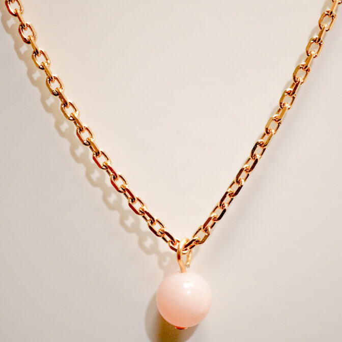 ピンクオパールを一粒使用したネックレスになります。